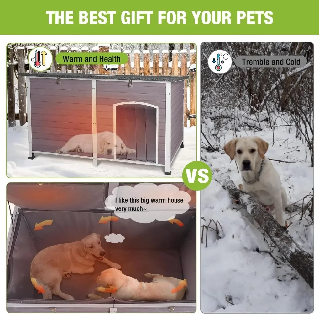 59.1″ Large Dog House Outdoor with Insulated Liner for Winter Insulation Dog Kennel Upgrade All-Around Metal Fame Durable